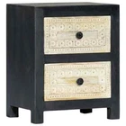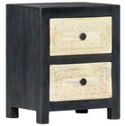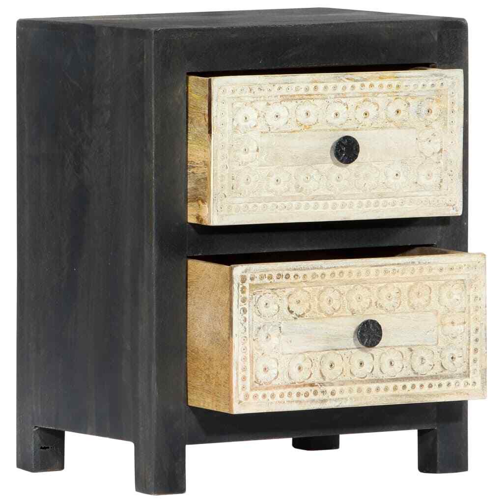 Bring the luxury of hand-carved pattern to your interior with our elegant wooden bedside cabinet! Made of solid mango wood, the nightstand has been given a beautiful finish by polishing, painting and lacquering, making it exude a refine look. The two drawers with hand craved pattern adds to the bedside cabinet's beauty while providing ample storage space for keeping your smaller items organized and within reach. Additionally, the bed drawer cabinet is easy to assemble and clean with a damp cloth. Upgrade your interior to the next level with our elegant nightstand! Color: Gray and natural Material: Solid mango wood, MDF Dimensions: 15.7" x 11.8" x 19.7" (W x D x H) 2 drawers with hand carved pattern Polished, painted, and lacquered California Proposition 65 Warning: This product can expose you to chemicals including wood dust, which is known to the State of California to cause cancer. For more information go to . Shipping Restrictions Due to the limited access of our couriers, this item cannot be delivered to the following locations: Alaska Federated States of Micronesia Guam Hawaii Marshall Islands Military Posts (APO / FPO) Palau Puerto Rico US PO BOX Virgin Islands Our customer support will contact buyers for orders with no shipment service, and these orders will be cancelled and fully refunded afterwards.