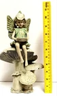 Green Resin 3 Mushroom Lucky Fairy Garden Room Angel. Measures approximately 11" H X 7" W X 5" D. Gently pre-loved good condition. She has minor hard-to-see thumb imperfections, which appear to be a manufacturer flaw or missing paint. See photos for close-up view. Weighs approximately 2.2 lbs. Can be used indoors or outdoors. She is absolutely stunning! I will ship with extra padding to ensure the integrity of the piece.