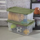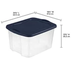 Outside Dimensions: 24 5/8" x 18 3/4" x 13 7/8" Interior Dimensions at bottom: 18 3/8" x 15 1/8" x 13 1/8" Carry through handles allow for full grip access and easier portability Ideal for a variety of household storage needs, with a wide range of sizes The clear base provides quick viewing of contents Deep recessed lid allows for secure stacking of multiple bases BPA-free and phthalate-free