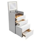 Vanity Desk with Flip Top Lighted Mirror Vanity Desk with Makeup Stool Grey Description Wake up from your comfortable bed every morning, sit in front of the makeup vanity table, open your beloved items, and the high-definition mirror fully reflects your beauty. Our exquisitely crafted makeup vanity table that combines practicality and aesthetics is something every girl dreams of owning! Key Features Last for Years: It is made of premium pine wood and density board with a lamination treatment, which is wear-resistant and not easy to deform, ensuring its beauty and long-time use. Cozy Make-up: The mirror is equipped with three colors of LED lights (warm, cold, and natural) and can be dimmed by long-pressing the button on the mirror, reflecting your clear makeup and meeting your different makeup needs. Ample Storage Space: It contains 3 drawers, 2 drawers are in the desk and the other one is in the stool. When you flip the top of the desk, there is one more hidden storage space for you. You can keep your daily cosmetics and makeup tools such as eye shadows, perfumes, and brushes organized for a tidy living space and a convenient makeup process. User Friendly: The top of the desk can be flipped up and foldable, making it not only a makeup vanity but also a bedside table. When you don’t use the mirror, just fold it down. Additionally, the soft vanity stool can hold up to 220lbs for comfort and peace of mind. Space-saving: The vanity stool can be hidden in the vanity desk, together with the compact footprint (18.9*15.75 inches) and vertical construction, this product fits nicely next to your bed without taking up too much space, which is ideal for rooms with limited space. Ideal Gift: This product is popular with girls, so it can be a thoughtful holiday or birthday gift for a daughter, sister, girlfriend, wife, or mom. Easy to Clean: Thanks to the smooth surface and simple construction, you can wipe the surface clean of stains and dust with a damp rag. Protective Package : We have used foam wrapping for this product, designed to minimize damage to the product during shipping. Details Recessed Handle: It makes it easy to pull out the drawer. Smooth Edges: The rounded edges are burr-free, which is comfortable to touch and enhances the safety of use. Application It can be used as a dressing table, desk, bedside cabinet, etc. It is suitable for homes, apartments, dormitories, studios, live rooms, etc. Specification Material: Pine Wood and Density Board Process: Lamination Color: Grey Style: Modern Shape: Rectangular Assembly Required: Yes Mounting Type: Freestanding Light Source: LED Efficiency: E Light Color: Warm, Natural, Cold Light Adapter Input: 100-240V, 50/60Hz Adapter Output: 12V, 1A Number of Drawers: 3 Load Capacity: Within 100kg/220lbs Drawer Height: 15cm/5.91in, 20cm/7.87in Product Size(Folded): 48*40*82cm/18.9*15.75*32.28 in Pakcage Size: 89*50*18cm/35.04*19.69*7.09in Gross Weight: 28kg/61.73lbs Net Weight: 26.6kg/58.64lbs Package Included 1* Makeup Vanity Table 1* Power Adapter 1* English Installation Diagram Other Accessories for Assembly Notes Please check the product style and size before ordering. Please note that this product does not contain any cosmetics. Please note that the equipped power adapter's plug type is CN standard. Please allow the slight color difference caused by the shooting light and 1-3cm error due to manual measurement, and make sure you do not mind before you order. Payment Delivery details Terms of sales About us Contact us Payment We accept ebay payment 。 Fees such as import duties, taxes are not included in the item price or shipping costs. These charges are the buyer's responsibility. Delivery details Shipping: 2-9 working days to: USA Terms of sales We maintain high standards of excellence and strive for hundred percent customer satisfaction. Feedback is very important to us. We hope that you contact us immediately before you give neutral or negative feedback, so that we can address your concerns. It is impossible to address issues if we do not know about them! About us Your satis faction is our ultimate goal. We work hard to earn your trust and future business. Our certified technicians have tested each item before shipping. The unit comes with 1 year limited warranty on all manufacturing defects. a) If you receive a defective item, you may return it or ask for a discount. Please contact us within 14 days after you receive the package. b) What you returned must be intact and in its original packaging as re? u. Customer is responsible for shipping costs of the returned item. c) We will cover the cost of shipping back t with the shipping rate indicated in the registration page. We will send you a new unit or refund the full payment you paid. Thank you. Contact us Business Hour Business Hour: Monday To Friday: 8:30 AM to 5:00 PM (Beijing China time) Due to time zones, our reply to your questions may not be immediately. But within above working time, we will reply your email within 24 hours. If it's non-workdays, please kindly be patient and wait till Monday. Please contact us with ebay message. Please feel free to contact us if you have any questions. Monday To Friday: 8:30 AM to 5:00 PM (Beijing China time) Due to time zones, our reply to your questions may not be immediately. But within above working time, we will reply your email within 24 hours. If it's non-workdays, please kindly be patient and wait till Monday. Please contact us with ebay message. Please feel free to contact us if you have any questions.