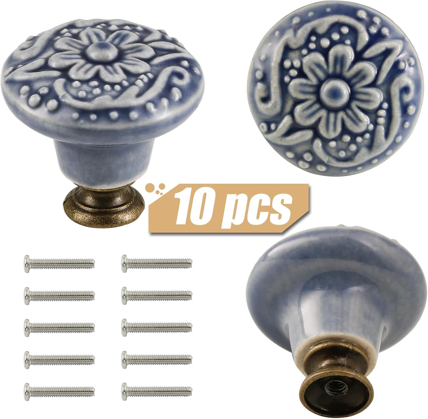 Store New Arrivals Add to Favorite View Feedback Contact Greyish Blue Ceramic Knobs 10 Pack Flower Drawer Pulls Vintage Cabinet Knobs - Antique Dresser Pulls with Screws for Closet Drawer Cupboard Cabinet and DIY Home Project Description Item model number SENDFCK02 Style Retro Handle Type Knob Number of Items 10 Country of Origin China Theme Vintage Batteries Included? No Unit Count 10.0 Count Batteries Required? No Finish Antique Exterior Finish Ceramic Brand Zernmiarder Material Ceramic Shape Round Finish Type Antique Specific Uses For Product Door, Drawer, Cabinets, Wardrobe Manufacturer Zernmiarder Item Package Quantity 10 Customer Package Type Flat Free Package Item Weight 11.3 ounces Special Features Easy to Install, Sturdy, Durable Special Feature Easy to Install, Sturdy, Durable Part Number SEND240103002FCK Color Greyish Blue Handle Material Ceramic Included Components Screw, Knob Product Dimensions 4.72"L x 1.37"W Number Of Pieces 25, 10 *Purchase Guiding* 10 x Greyish Blue Ceramic Flower Knobs with mounting set. Knob size: 1-3/8" x 1-1/4"(Dia.* L). Mounting hole depth is 5/16" / 8mm. 10 x Regular Screws 1" / 25mm. *Vintage Appearance* Elegant appearance, antique design and exquisite craftsmanship make it not only beautiful and stylish when collocated with modern furniture, but also add a classic charm to your home. *Durable Quality* The drawer knob is made of ceramic, which is sturdy, durable, and easy to maintain. It is an economical and practical home decoration, and easy installation is a good choice for DIY projects. *Wide Applicability* The relief pattern and simple design is suitable for many kinds of furniture such as kitchen cabinets, drawers, cabinets, doors, drawers, wardrobes, home dressers, offices and many other uses. *Comfortable Purchase* If you have any questions about our products, please contact us by email in Amazon, in order to provide our customers with a comfortable purchasing experience, we will reply you within 24 hours. Features: 1.Elegant appearance, antique design and exquisite craftsmanship make it not only beautiful and stylish when collocated with modern furniture, but also add a classic charm to your home. 2.The drawer knob is made of ceramic, which is sturdy, durable, and easy to maintain. It is an economical and practical home decoration, and easy installation is a good choice for DIY projects. 3.The relief pattern and simple design is suitable for many kinds of furniture such as kitchen cabinets, drawers, cabinets, doors, drawers, wardrobes, home dressers, offices and many other uses. Specification: Color: Greyish Blue Material: Ceramic Knob Size: 1-3/8" x 1-1/4"(Dia.* L) Regular Screws : 1" / 25mm Package Included: 10 x Ceramic Flower Knobs 10 x Regular Screws Warm Tips: 1.As the size is measured by hand, please allow 1-2mm difference between the actual size and the hand measured size. 2.The pictures of the product are as close to the real thing as possible, but the colors are slightly different due to equipment, lighting and display. ABOUT US We offer the best prices around on high quality products. Our E-store includes media such as books, movies, music and games while offering electronics, toys, sporting apparel, clothing, tools, general home, garden items and more. SHIPPING We are always working hard to ensure your package arrives as soon as possible. Please understand that some factors like weather, high postal traffic, and the performance of shipping companies are outside of our control. We offer free shipping to the lower 48 states and ship within 2 business days of payment, usually sooner. We do not accept P.O. Boxes. Please provide a physical address. RETURNS We offer a 30-Day Return Policy on items which you are not completely satisfied with. You have the option for a full-refund or an exchange of the item. No returns are available on items shipped outside of the USA. PAYMENT We accept PayPal. CONTACT US This page content is yet to come Please ad us to your favorite seller and visit again later Thank You CUSTOMER SATISFACTION We try our very best to make sure every customer is completely satisfied. If there's a problem, message us! We're happy to help.