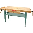 Features The combined beauty, work and tool friendly attributes of a solid oak work surface with the strength and durability of square steel legs and cross bracing are the best workbench money can buy To top it off, we've also included oak front and side vises with removable bench dogs and two storage drawers with ball bearing slides All wood surfaces have clear lacquer to show off the wood's natural beauty and the steel legs and shelf are "Grizzly green" to match your favorite machines What's in The Box Heavy Duty Oak WorkBnench with Steel Legs - T10157 Owner's Manual Warranty 1 Year Limited Factory Warranty 30 Day Satisfaction Guaranteed Specifications SKU T10157 Brand Grizzly Table Top 1-1/2 in with 2 in thick edge skirt Max Jaw Opening 4 in Bench Top(inches) 60 L x 30 W Square Tube Steel Legs Adjusts 32 in - 39 in bench height Item Dimensions(inches) 63 W x 33 D x 6 H Weight 190 lbs why buy from us? secure & hassle-free shopping All items are covered by manufacturer warranty. fast shipping Most orders delivered in 1-3 business days. customer service Call us toll free: 1-800-629-3325 satisfaction guaranteed All our sales are backed by a 30-day satisfaction guarantee.