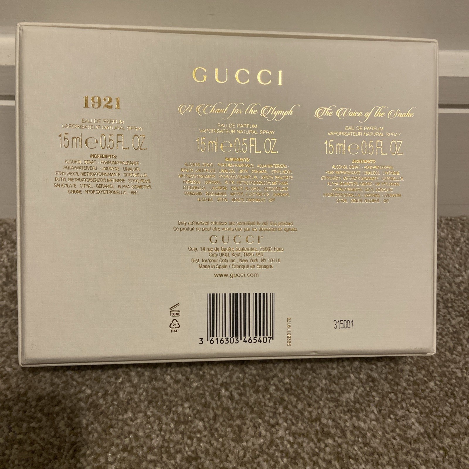 This is a new under item without seal a tiny mark on box but otherwise like new condition! Please see pics and any questions feel free to ask… Includes 1921 EDP 15ml The voice of the snake EDP 15ml A chant for the nymph EDP 15ml Must have for a collector to add to addition or high end perfume lovers The Gucci Alchemist's Garden Fragrance Gift Set includes three 15ml travel-sized bottles of Eau de Parfum, making it a perfect present for fragrance lovers. With scents of rose, saffron, and oud, this long-lasting fragrance is sure to leave a lasting impression. The luxurious formulation in spray form adds a touch of elegance to any outfit, making it a must-have addition to any perfume collection.