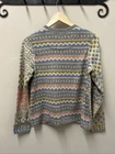 Gudrun Sjoden Womens Cardigan S Ivory Floral Wool Cotton Lagenlook Patchwork This Gudrun Sjoden cardigan is a must-have for any fashion-forward woman. The ivory floral pattern and tight-knit wool and cotton fabric make it perfect for any occasion, whether you're traveling, attending a party, or just dressing casually. The long sleeves and crew neckline provide warmth and comfort, while the button accents add a touch of elegance. This vintage cardigan is a regular fit and is made from lightweight knit fabric, making it suitable for all seasons. It features a patchwork design and is hand wash only. The cardigan is made in Bulgaria and is available in size S. Add this ethnic-themed cardigan to your wardrobe today and elevate your style game!