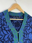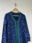 Gudrun Sjoden Wool Knitted Cardigan Design : A vibrant floral jacquard pattern in blue and green tones, featuring button closure with decorative details Fit : Relaxed and flattering silhouette with mid-length sleeves. Condition : Excellent, no signs of wear or damage. Size : S (Check against measurements) measurement in cm Shoulders: 35 cm Bust: 43 cm Length: 85 cm Sleeve: 56 cm Style : Ideal for casual or semi-formal wear, versatile for layering. A high-quality piece from the sustainable Gudrun Sjoden brand, known for eco-friendly and artistic designs. Perfect for adding a touch of uniqueness to your wardrobe!