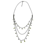 Gunmetal Gray Multi Strand Tiered Green Faux Pearl & Faceted Beaded Necklace. In good preowned condition. Gunmetal gray metal. Faceted green drop beads, gunmetal hammered round beads and green faux pearl/pebbles. Multi strands, tiered/layered. Lobster closure with an extender.