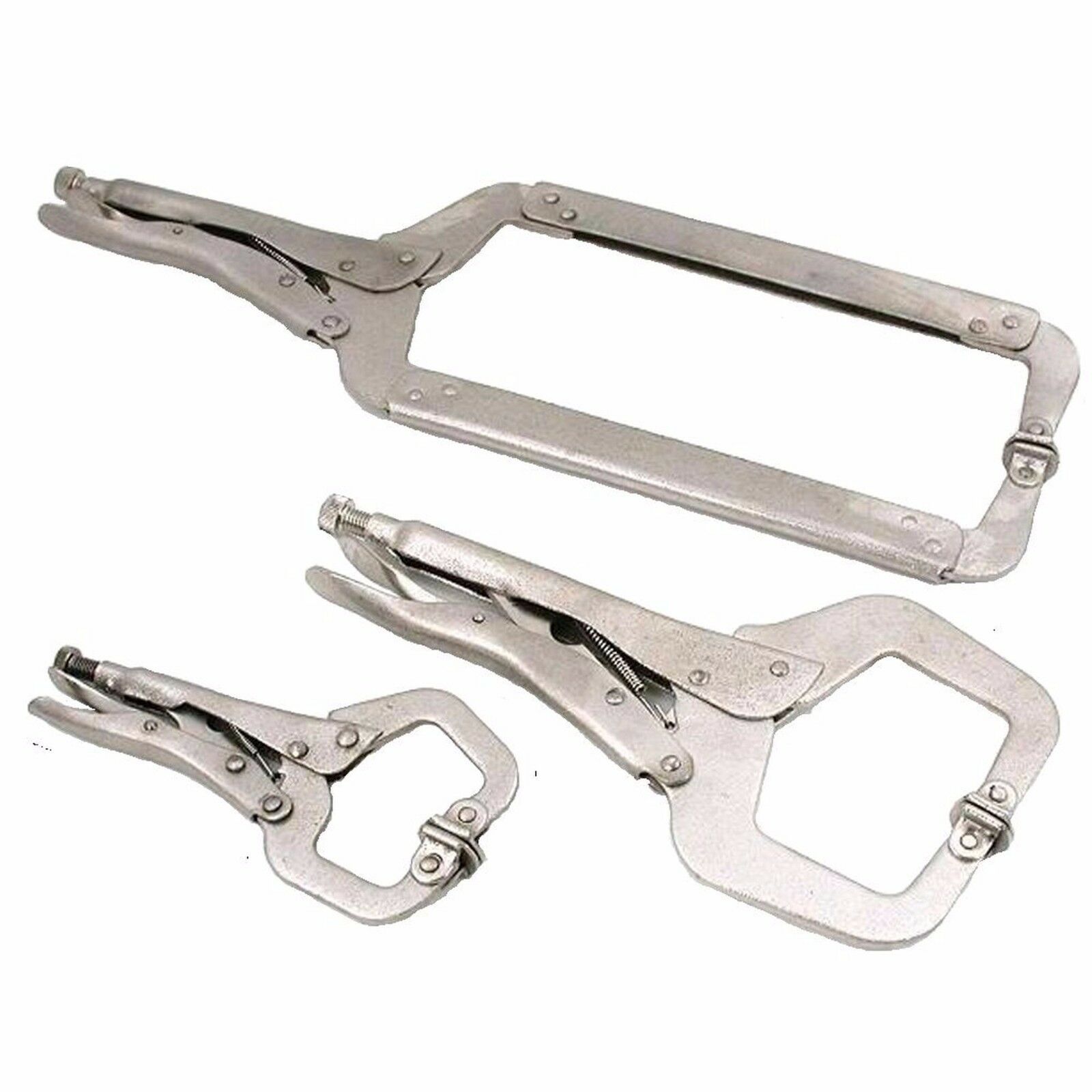 SEE - DESCRIPTION - BELOW HAWK TP7030 - Locking C-Clamp Set 3 Pc 6in,11in and 18in Bright Nickel Plated FEATURES : Sizes include: 6 inch, 11 inch and 18 inch Industrial Quality micro adjustment screw on each clamp Nice storage pouch to keep clamps when not in use. HAWK TP7030 - Locking C-Clamp Set 3 Pc 6in,11in and 18in Bright Nickel Plated. 3 Pc Locking C-Clamp Set. Consisting of Sizes 6 inch, 11 inch and 18 inch. Industrial Quality, Bright nickel plated finish. Comes with micro adjustment screw on each clamp. Nice storage pouch to keep clamps when not in use. Brand : HAWK Item Number : TP7030 UPC Number : 768530070308 Shipping Weight Per Item :4 lb 13 oz Made In : China GENERAL POLICIES Order by 10:00 am PST or 1:00 pm EST for same day shipping 30 Day Warranties Returns Require RMA Free Shipping Lower 48 USA States on most items Items being returned must be received within 10 days after RMA is issued or RMA is Voided Some items to Alaska and Hawaii as well (see checkout before paying). Other countries will be shipped through eBay domestically using their Global Shipping Program. (We ship to eBay and eBay ships to you). Next or 2nd day Air shipping is non refundable if you choose this upgrade. 30 day return policy - No restocking fees - Items must be returned in same condition as received - parts or packaging missing will be deducted from refund. Next day or 2nd day Air shipping is non refundable if you choose this upgrade. Next day only available in Oregon . SHIPPING - WARRANTIES / RETURNS - PROBLEMS / CONCERNS Shipping Warranties / Returns Problems / Concerns Shipping Warranties / Returns Problems / Concerns THIS ITEM SHIPS WORLDWIDE Most of our items are shipped with Free Shipping and other Shipping cost are calculated automatically by your zip code to offer you the lowest shipping costs to your location. Other countries will be shipped through eBay domestically using their Global Shipping Program - meaning we ship package free to eBay and eBay will ship package to all locations outside the United states and eBay charges overseas shipping cost paid by customer. Method of Free Shipping within the USA is USPS First Class up to 16 oz or Priority Mail 1 lb 1 oz and over, UPS Ground or FedEx Ground (our choice). Delivery times normally take between 1 - 3 days and possibly up to 5 days for the East coast. Next day or 2nd day Air shipping is available but non refundable if you choose this upgrade. Next Day Air only available in Oregon . Check the Shipping (Fast 'N Free) date in center top section of this listing for estimated delivery time. Custom forms will be legally filled out as merchandise and Buyers are responsible for any Duties, Taxes and Fees Levied by their own Country Customs Office. The Customs Value amount will be the final bid price (not including the S/H costs - if we show a shipping cost for your item) for all items purchased. Our most important goal is to provide Excellent Customer Service We want you to be satisfied with your purchase. In the event you are not satisfied, please let us know prior to leaving feedback to give us the opportunity to try and make things right. We are very easy to work with as our positive feedback shows. If you need to return your item, you will be responsible for the cost of shipping it back to us. You will be refunded the purchase price provided the item is returned in the same new unopened condition as when shipped. Return processing time generally takes a few days. The buyer must contact us before returning the item to obtain a Return Merchandise Authorization number (RMA). All RMA items must be received by us within 10 days from the issued date of the RMA or RMA is voided. Any packages refused by buyer and marked return to sender will not be accepted. Any item returned to seller with postage due will also be refused. In the unlikely event you receive a product that is incorrect, missing parts, or damaged we will send replacements to you at our cost. (A picture of the damaged part may be required to ensure we send the correct replacement). Buyer must report these conditions to Best Choice Mart via E-Mail within 3 days after receiving item or items purchased will be presumed to be in excellent condition and without fault. This warranty applies only to products purchased by the original purchaser and is non-transferable. The warranty does not apply to products that have been abused, misused, modified, or repaired by anyone. Normal wear and tear is not covered under warranty. Best Choice Mart reserves the right as final authority on whether the products should be refunded or replaced. Best Choice Mart makes no other warranty and no implied warranties, including any warranty of merchant-ability or fitness for a particular purpose. Best Choice Mart maximum liability here under is limited to the purchase price of the products. In no event shall Best Choice Mart be liable for any consequential, indirect, incidental or special damages of any nature arising from the sale of the product. If there is a problem, let us before leaving feedback - help us resolve problems If you have any questions or concerns, you can reach us during normal business hours 9am to 5pm Monday - Friday (Excluding Holidays and Weekends) through eBay Messages. Our goal is to make sure you are a satisfied buyer so please give us the chance to do so should anything go wrong with your order please let us know. Let us work with you to resolve any issues quickly. We appreciate your business and trust you will be satisfied with your items purchased and our customer service. We are looking for long term customers and if we treat you well the first time maybe you will consider us again when making another purchase. Enjoy your items and products purchased and hope to see you again real soon... Thank you for shopping with us DESCRIPTION HAWK TP7030 - Locking C-Clamp Set 3 Pc 6in,11in and 18in Bright Nickel Plated 3 Pc Locking C-Clamp Set. Consisting of Sizes 6 inch, 11 inch and 18 inch. I
