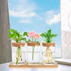 Product Description Tabletop Glass Planter Water Planting Glass Vase with Wooden Tray ltem Size: You will receive 3 pcs glass planters vase with 1 compatible woodenrack, in an elegant and modern style. The wooden stand size : 11.4" L x 3.7" Wx 0.5" H, each glass vase : 4.7" Hx 3.1" W, opening: 3.1 inch diameter. (Noplants or other decorative objects included in this item)Premium Material: Lawei's hydroponic vases made of high quality glass, withnature wood. Our glass plants terrarium are better than plastic propagationstation, more clear to watch growing of roots, they are no harm to plants andthey are no pollution for home. Creative Design: Tabletop glass plant vase designed with wood lid andwooden tray. The cork tops are great and not only hold your cuttings in place.but the water stays clear and doesn't evaporate as quickly. Lids help to holdplants, stands help to prevent hydroponic glass bottles from falling. Easy toclean, change water and assemble.Perfect for Various Scenarios Decorations:These terrarium glass plantcontainers, so pretty and attractive, bring green into your room. Suitable asdecoration for your office, room, balcony, counter, book shelf, desktop, diningtable, etc, adding a refreshing touch. This is pretty awesome for propagatingplants, very minimalist and functional.Wide Application: Simple desktop glass hydroponics propagation jar issuitable for most plants propagating, like pothos, fern, lucky bamboo, africandaisy, herb, hydroponics plant and the cutting of flower. A great present foryour friends who loves planting, sharing natual beauty with your loved ones.H&E plant terrarium, as new hydroponic vessels, perfect for propagating small cuttings and water planting hydroponic plants. It is cleaner than plant plants with soil and pots, and it do not need to water every day. Made of high quality glass, with nature wood. Our water planting glass vases are designed as corks with holes, which can prevent water from evaporating too fast and cause temperature loss, and can also protect the roots of plants and make plants grow healthier. Suitable for most plants propagating, like pothos, fern, lucky bamboo, African daisy, herb, hydroponics plant and the cutting of flower. Displays fresh flower, small plants for home decor in bedroom, restroom, kitchen, windowsill, coffee table, or office. Definitely a great choice if you want something a little different than the ordinary propagation station. Specification Package: 3 Pcs Glass Plant Pot Size: wooden stand size : 11.4" L x 3.7" W x 0.5" H, glass vase : 4.7" H x 3.1" W, opening: 3.1 inch diameter Material: Glass + Wood Multifunctional: suitable for most plants propagating, like pothos, fern, lucky bamboo, african daisy, herb, hydroponics plant and the cutting of flower Premium Material H&E's hydroponic vases made of high quality glass, with nature wood. Our glass plants terrarium are better than plastic propagation station, more clear to watch growing of roots, they are no harm to plants and they are no pollution for home. Creative Design Tabletop glass plant vase designed with wood lid and wooden tray. The cork tops are great and not only hold your cuttings in place, but the water stays clear and doesn't evaporate as quickly. Lids help to hold plants, stands help to prevent hydroponic glass bottles from falling. Easy to clean, change water and assemble. Perfect for Various Scenarios Decorations These terrarium glass plant containers, so pretty and attractive, bring green into your room. Suitable as decoration for your office, room, balcony, counter, book shelf, desktop, dining table, etc, adding a refreshing touch. This is pretty awesome for propagating plants, very minimalist and functional.