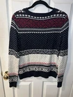 This H&M LOGG Fair Isle Sweater in size M features a classic Nordic design with deer and snowflake patterns, perfect for the Christmas theme. Made from a blend of polyamide, viscose, alpaca, and cotton, this long sleeve pullover is ideal for staying cozy during the winter season. The unisex style and blue color add versatility to this stylish sweater. Pit to pit 20” Shoulder to hem 25”