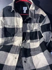 Elevate your casual wardrobe with this stylish H&M Overshirt in Light Beige and black Plaid. The button-up shirt features a padded design for extra warmth and comfort during the colder seasons of fall, winter, and spring. The long sleeves and collared neckline provide a polished look, making it perfect for both casual and formal occasions. The overshirt is made for men in size small, with a chest size that can be viewed in the photos. The snap closure adds a touch of convenience and style to the shirt. This shirt is a must-have for any fashion-forward individual looking to stay warm and stylish during the colder months.