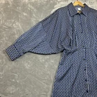 Elevate your wardrobe with this stunning H&M Women's Shirt Dress in a beautiful blue and black satin fabric. This dress boasts a collared neckline, long dolman sleeves, and a button closure, making it perfect for any occasion from formal to casual. The dress has a solid pattern and a short length that will make you stand out from the crowd. This dress is machine washable and is available in size M. It is suitable for travel, weddings, parties, cocktails, workwear, and business events. Make a statement with this stylish dress from H&M that will complement your style and elevate your fashion game.