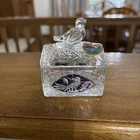 HOFBAUER BYRDES Lead Crystal Glass Small Trinket Ring Box w/ Bird Lid Vintage