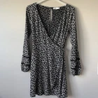 An adorable Hollister Black and White Floral Print Long Sleeve Wrap Dress Size Medium Very Good Condition Side Zip Crochet trim on sleeves Keyhole opening at center back We ship within 3 days, usually sooner. Items are stored in a smoke-free, pet-free home. If you have questions, feel free to contact us through Ebay. Thank you for shopping with us! Have a great day!! Measurements: 18" - Underarm to underarm 32" Back from neck to bottom of hem 19" Sleeve from arm pit to bottom of sleeve hem