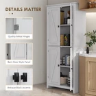 Farmhouse Style: This kitchen storage cabinet with barn door design and black square handles creates a farmhouse charm that will go great with any home decor. Magnetic catches make doors close firmly. Upgrade Your Storage: The 4-tier shelving of this kitchen cabinet gives you plenty of room for dishes, pots and pants or small appliances. Keep organized behind 4 doors, so your items stay safe and dust-free. Adjustable Shelves: If you have taller items, two 3-level adjustable shelves inside our freestanding pantry can be customized to meet your needs. Stable and Safe: Made of quality MDF frame with anti-tipping design on the back, this food pantry cabinet ensures stability and safety, as well as easy cleaning. Kitchen Pantry Information: Overall Dimensions: 31.5" W x 15.75" D x 71.75" H. Weight Capacity: 88 lbs. (Overall), Each shelf: 33 lbs. Assembly required.