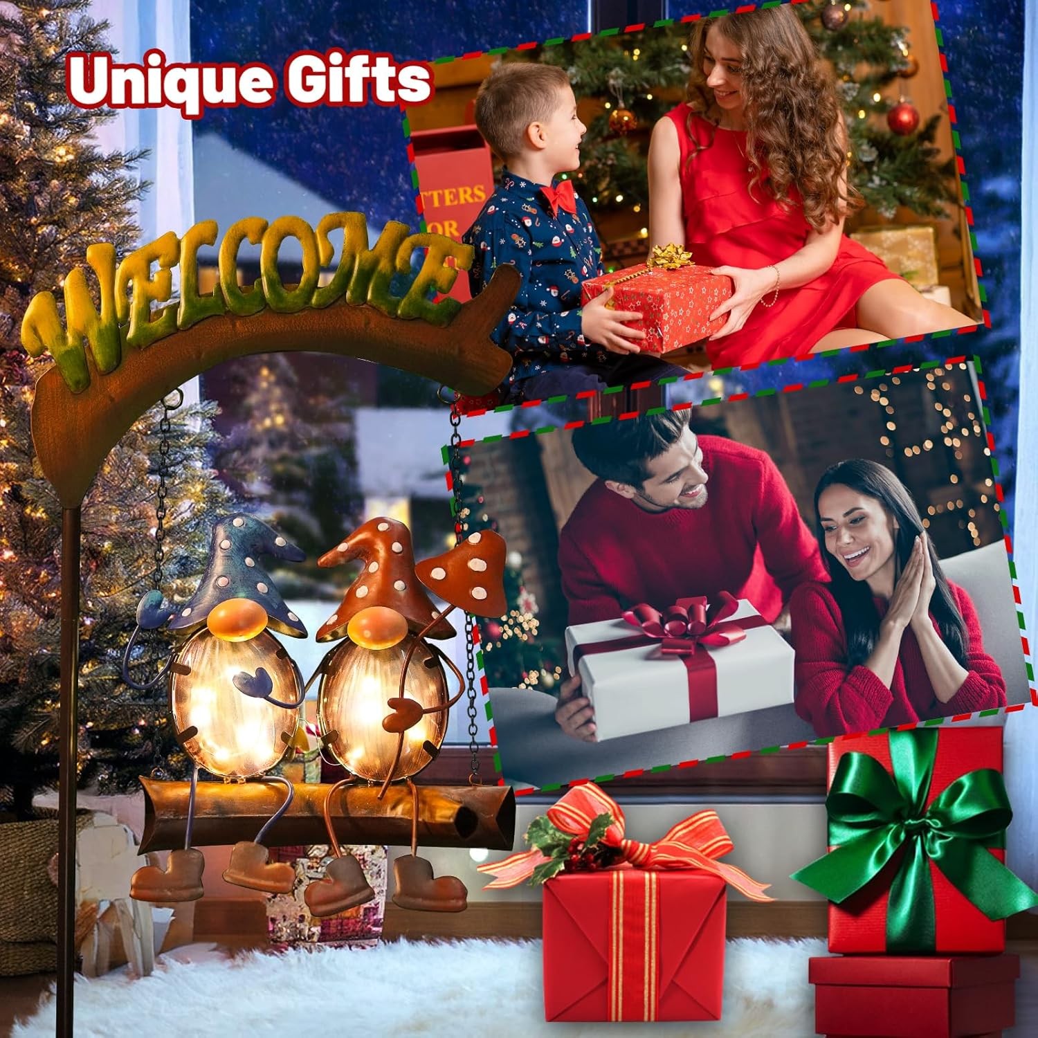 Free eBay listing template designed by dewiso.com HONGLAND Solar Lights Outdoor Decor, Gnomes Swing Garden Decor, Funny Gifts for Women Mom, Gnomes Outdoor Decorations with Welcome Sign for Front Porch Patio FREE AND FAST SHIPPING! About this item 【Gnome Patio Decor】The unique and original fairy design, with the gnome partner holding the mushroom playing on the swing with the word "Welcome", makes your garden full of vitality and fun 【Solar Outdoor Decor】Gnome decoration solar garden lights absorb enough energy during the day, automatically light up at night, warm your garden 【Gnome Garden Statue】Gnomes outdoor statue lights can be used as both a welcome sign and a pathway light. The design of the swing can make the gnome partner swing with the wind to decorate your garden, which is a whimsical decor 【Yard Decorations Outdoor】Just connecting the stakes and pushing it into the ground. Gnome solar garden figurines perfectly decorate your garden yard and lawn, you will get unique gnome solar decorative stake lights and enjoy the view of your garden day or night 【Funny Gifts Idea】Garden gnomes are seen as a good life and a good future that will bring good luck to your family and friends. Share it with your family or friends, it is an excellent birthday gifts for women, house warming gifts, holiday gifts for mom etc. › Product We offer a 30-Day Return Policy on items which you are not completely satisfied with. You have the option for a full-refund or an exchange of the item. No returns are available on items shipped outside of the US . Shipping We offer Free Shipping to the US and ship within 2 business days of payment, usually sooner. We use UPS express shipping. That's why your products are usually delivered within 3 days . Contact We try our very best to make sure every customer is completely satisfied. If there's a problem , message us! We're happy to help. 24/7 live chat available.