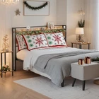Specifications: - Color: Rustic Brown, Black - Material: Particleboard, Steel - Product Size: 60.2"L x 5.9"W x 39.9"H (Queen Size) - Product Weight: 28.2 lb (Queen Size) - Max. Static Load Capacity of Top: 44 lb Package Contents: - 1 x Headboard - 1 x Accessory Kit - 2 x Socket - 1 x Instructions Notes: - This product does not come with hardware to attach the bed frame to the headboard. - The headboard can be used against the wall or attached to the bed frame. - This product has anti-tip kit and two types of expansion screws (for different walls). Be sure to install the anti-tip kit before use. Accessible Sockets: There are 2 sockets built in the left and right ends of this headboard respectively. Each socket includes 1 outlet, 2 USB ports and a 4.9-foot power cord, convenient for charging your phones, smart watches, desk lamps etc Storage Platform: This queen size headboard comes with an open storage shelf in 60.2"L x 5.9"W , providing ample space for scattered items such as phones, glasses, alarm clocks, etc before you go to bed, creating a clean and comfortable sleeping environment Classic Design: Exquisite brown panel with black iron frame showcases a strong retro color. The thoughtful guardrail adds a unique design feel. This retro industrial style headboard can instantly elevate your home taste Stable Structure: The queen headboard is made of quality particleboard and strong metal, firm and stable. With reliability, it offers good back support silently. Four adjustable feet keep it level on various surfaces without scratches on floors or carpets Easy and Effortless Assembly: You will receive clear and detailed assembly instructions, numbered accessories and necessary installation tools. The assembly process is simple and you can fully enjoy the fun of DIY