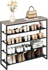 HOOBRO Shoe Rack, 5 29.5"L x 11.2"W x 29.5"H, Greige + Black Product Details Room Type: Entryway, Closet, Bedroom, Living Room, Mudroom Number of Shelves: 5 Special Feature: Adjustable Product Dimensions: 11.2"D x 29.5"W x 29.5"H Style: Industrial Age Range (Description): Adult,Kid Finish Type: Unfinished Brand: HOOBRO Size: 29.5"L x 11.2"W x 29.5"H Weight Limit: 22 Pounds Assembly Required: Yes Number of Items: 1 Manufacturer: HOOBRO Included Components: Hardware, Accessory Kit Model Name: Shoe Rack Item Weight: 5.5 Kilograms Furniture Finish: Unfinished Installation Type: Freestanding Weight capacity: Maximum weight: 22 Pounds Unit Count: 5.0 Count Product Name: Shoe Rack Item Weight: 12.1 pounds Item model number: BG50XJ01 Shoe Rack MaterialMounting Type: Engineered Wood, MetalFloor Mount Shelf TypeShape: Oxford FabricRectangular 5-Tier Shoe Rack: Shoes no longer need to be piled in the corridor, because you can put them neatly on this 5-tier shoe rack. By making full use of the space, you can clearly get your shoes Storage Helper: This shoe rack is 11.2"D x 29.5"W x 29.5"H in size, very suitable for entryway with limited space, living room, bedroom, closet, apartment and dormitory. Extending vertical space usage, this shoe rack can be a choice for saving space. It also can be a storage shelf. Unleash your creativity! Material and Structure: This shoe rack is made of durable waterproof oxford cloth, particleboard and thickened iron pipe, featuring easier clean. The top wooden shelf can be used to place albums, plants, handbags and other items, beautiful and practical Built to Last: The reasonable structural design enhances the stability of the shoe rack. Max load ability of the top is 22 lb with each shelf bearing up to 11 lb. 4 adjustable feet help keep balance at all times Easy Assembly: Easy to set up in just a few steps. With detailed instructions and clearly numbered parts, it does’ t take any time to assemble this shoe rack
