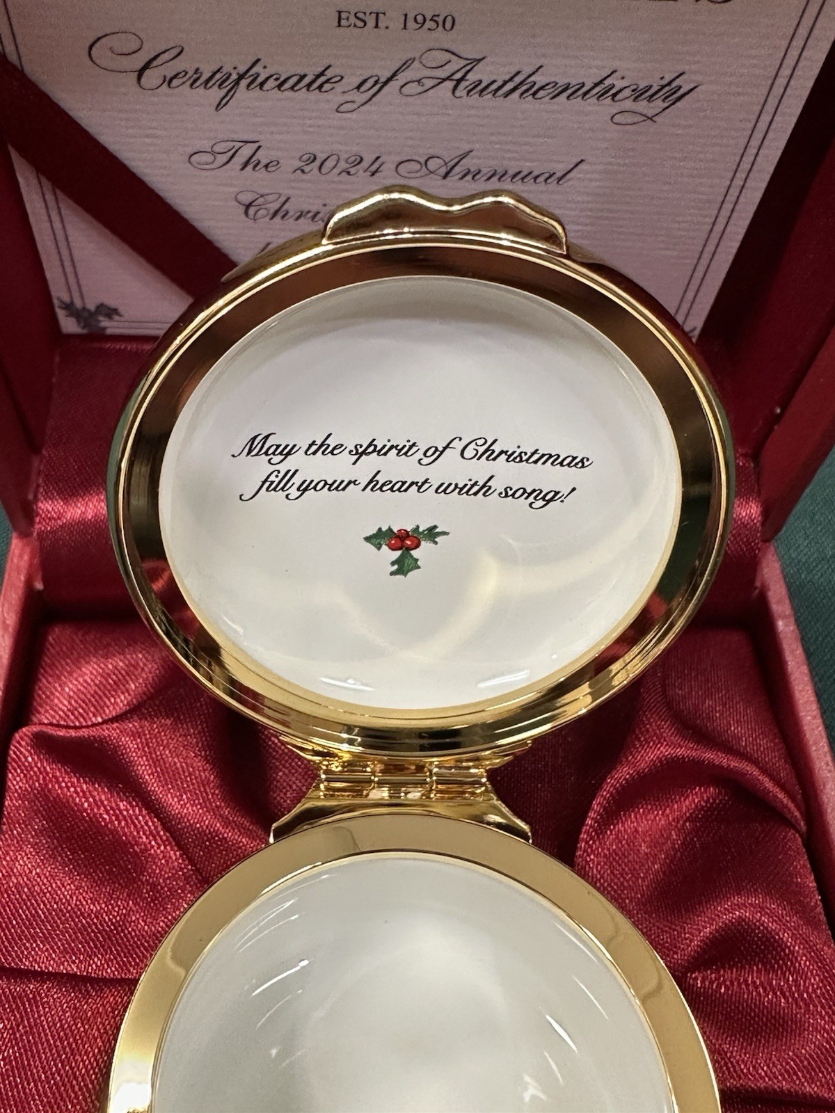 The Halcyon Days 2024 Annual Christmas Box is a collectible decorative item perfect for storing small treasures or jewelry. With a festive theme, this boxed item is a great way to commemorate the holiday season of 2024. This unique product serves as a special keepsake for any collector, showcasing the artistry and craftsmanship of the year.