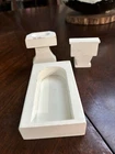 Halls lifetime toys Antique, Wooden , Doll house Furniture. 3 Piece Bathroom. This chunky wooden furniture will last and last. Just the right size for chunky little fingers. The toilet has a few scuffs on the seat but otherwise quite nice for its age.