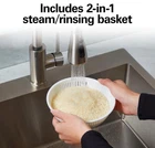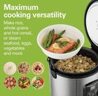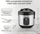 -The removable nonstick pot fits up to 8 cups/2 quarts of cooked rice. -The steam basket doubles as a colander. -One touch cooking with preprogrammed options. Item Condition: -It has not been used. -The item has been opened for inspection and testing. *Please note that there are minor scratches on the lid from previous shipping. It does not interfere with the function of the item. Look through the photos.