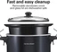 Elevate your meal preparation with the Hamilton Beach Stay or Go Portable Slow Cooker, an extra-large 10-quart appliance designed for the modern kitchen. Crafted with a blend of durable stoneware and a sleek black finish, it's a statement piece that functions just as much as it looks. The glass lid ensures your cooking is transparent, offering a clear view of your dishes' transformation. With three settings/programs, this slow cooker is adaptable to your cooking style and timeline. It boasts a powerful 450W electric power source and features a dishwasher-safe design for effortless cleanup. Measuring 11.5 inches in height and 15.75 inches in width, it's a perfect fit for any kitchen space, and the 120V voltage makes it a practical choice for home use.