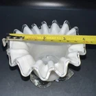 This exquisite piece of hand-blown art glass is sure to catch your eye. The flower-shaped tea light holder features a beautiful white swirl pattern and silver crested edges that give it an elegant and luxurious look. The glass is of the highest quality and has been expertly handcrafted to create a unique and one-of-a-kind piece. This tea light holder is suitable for any home decor style and is perfect for adding a touch of sophistication to your living space. The holder is handmade and features intricate details that make it a true work of art. Whether you're a collector of art glass or just someone who appreciates beautiful things, this tea light holder is sure to impress. I will pack with care and get it to you ASAP Thank you for looking !