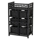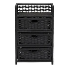 Tuck these compact 3-Drawer Chests into the nooks and crannies of your home and make the most of every cranny. Hand-woven, these paper rope chests are sturdy and beautiful, with a winsome charm that turns any space into an instant haven. Keep in the bathroom for linens, towels, and extra rolls of paper; place a bowl on the open top shelf filled with washcloths and soaps for a stylish and practical flourish. Place in the hall or closet to scarves and gloves, magazines, or anything else! Bring a little understated elegance to your world with these chic black chests and keep it all in order. Hand-woven, paper rope 3-Drawer Unit. Open top shelf. Finished with a chic black stain and protective coating. Humidity tested. Dimensions: 26. 4" H x 16. 9" W x 10. 6" D. Designer styled 3 drawer chest for use in any room Paper rope wicker Sturdy wood frame Black color Measures 26. 38-Inch high by 10. 63-Inch deep by 16. 93-Inch wide