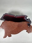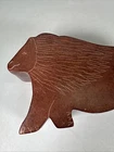 Hand-Carved Stone Lion Puzzle Box 6.5” – Missing Tail Piece, Made in Kenya Description: This is a hand-carved stone puzzle box in the shape of a lion, measuring approximately 6.5 inches long. Crafted by artisans in Kenya, the box features a hidden compartment inside and is decorated with etched details highlighting the lion’s mane and features. The interior is lined with a soft fabric, making it suitable for storing small items or keepsakes. Condition: Pre-owned. One part of the puzzle — the tail piece — is missing (see last photo). There is also a small chip on the corner. Despite this, the main box is still functional and visually appealing. Origin: Handmade in Kenya. Manufacturer: Unbranded. A unique decorative piece or collectible item with rustic charm.