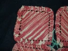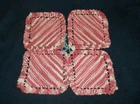 This a Handmade Crocheted Pink and White 4 Piece Coaster Set Or Hot Pad Set. This Set is pre-owned and in good condition!