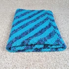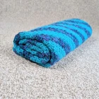Striped Baby Blanket - Blue/Turquoise Snuggle up your baby with this beautiful handmade blanket. Perfect for the stroller or car seat, or lay on the ground for some much needed tummy time. The bright colors are great for brain development and the soft yarn feels great against baby's delicate skin. This blanket measures 36" x 36". Made with love in a Smoke Free/Cat Friendly Home. Cats are not allowed to play with yarn Keywords: knit throw, striped blanket, turquoise throw, navy blue blanket, diagonal stripe throw, handmade blanket, knitted throw blanket, square throw, textured blanket, home decor, cozy throw, baby blanket, baby throw, stroller blanket, crib blanket, tummy time blanket