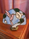 TESTED AND WORKS 10 INCHES TALL 10 INCHES WIDE NO CHIPS NO CRACKS IN STAINED GLASS 6 FOOT CORD HEAVY BRASS BASE SHIPPED WITH CARE The Handmade Hummingbird Stained Glass Light Lamp features a charming hummingbird pattern on stained glass, set on a brass base. This vintage/retro style table lamp is corded for power and uses a light sensor for operation. Perfect for adding a unique touch to your home decor.
