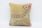 Handmade Kilim Cushion, 12"x12" Yellow Pillow Case, Home Decor Pillow