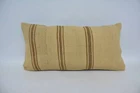 Handmade Kilim Cushion, Pillow for Sofa, 12"x24" Beige Pillow Sham