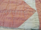 Charming antique handmade "North Carolina Lily variation" Quilt. LOVE the unusual reddish salmon color lilies and the green stems/leaves. LUSH hand quilting. Very precise and full! Measures 84 x 82 Nicely and neatly made. Hand pieced, machine sewn and hand quilted. 8spi. Very thin batting so it displays beautifully. All cottons~backing is the same cotton sheeting as the front. I have not cleaned or treated this quilt. Fabrics are sturdy and strong. Looks oh'so slightly dingy from storage and age/use. A soaking will brighten it up! No real damage. Has a few minor and small use/age spots (see last 2 photos). No fraying or holes. No color fading. May be a few popped quilting stitches. Very clean feeling. No odors. Non smoking home! Check out more items in My Store and other Auctions! _____________________ Please email with any questions or concerns. No problem to combine any of our items to save $$ on shipping costs. Shipping cost is based on the total weight of the items. Shipping cost includes tracking and insurance. We use plenty of BIG bubble bubble wrap~so you can be assured that your items will arrive intact. Thanks so much! 4331
