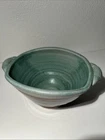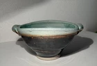 This is a handmade pottery bowl originating from North Carolina. It is an original piece, not a reproduction, with a production technique of pottery. The bowl has a mixed matte and gloss finish, showcasing a unique design. Measuring 3.5 inches in height and 7.25 inches in length, it weighs 1lb 3oz. This vintage-inspired piece adds charm to any kitchen or dining setting with its artisanal craftsmanship.