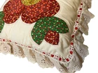 Handmade, Quilted Throw Pillow with white eyelet trim. Size 12"x12". Good clean condition. Has been washed. Thank you for shopping with me