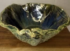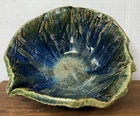 Beautiful hand made abstract Ceramic textured bowl. I honestly have no clue on its origins. It is signed by a “Johnny walk up” with a date of 2017. Has a depth of about 4”. Is 7” across and 4” tall. Has some cracks but not sure if it was from being made or aftermath. Please see pictures.