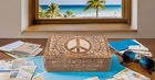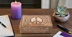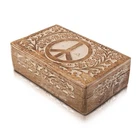 SIZE: 8 (L) x 5 (W) x 2.5(H) Inches ; 7 (L) x 4 (W) x 2 (H) Inches (Internal) ARTISAN MADE: This box is completely hand made, using simple artisan tools along with excellent quality, legally harvested Mango Wood, responsibly sourced from Authorized Government Channels, with the clear objective of sustaining both the environment, as well as the livelihood of the Artisans HIGH QUALITY: Strong hinges. Lasts forever. Rustic look & feel with a beautiful turquoise wash finish, which sets this box apart. A stunning handmade carving of the universal symbol for PEACE decorates the box surface. BEAUTIFUL & USEFUL: Commonly used as Jewelry organizer, Jewelry storage box, Trinket holder, storing Memorabilia, Lock Box, Spice Box, Watch Box, Photgraph Box, Memory Box, Playing Card Holder, etc YOUR PURCHASE IS SAFE: This product is packed securely & safely right out of the Artisans workshop, and exported directly to the Fulfillment Centers in the US, and fulfilled using the very best logistics partners. Your purchase is also protected by the returns, refunds & policy. So buy with confidence, and add to your home living room decor, or gift to someone special as a beautiful Birthday Gift, Housewarming Gift or Anniversary Gift