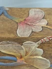 Handmade trinket box with hand carved painted leaves on five sides. It has a hinged lid. The box measures approximately 6” by 3” by 3”. It is preowned and in good condition.