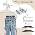About this item High Quality Wardrobe Storage Hangers: Our pants hangers are made of high quality anti-rust metal material, not easy to bend, can bear heavy clothes, metal hangers are more durable than wooden or plastic hangers. Clothes hanger has rubber tips on the exposed edges to avoid damage and cuts, and the non-slip clips have soft rubber to keep clothes from getting pinched. Hangers space saving: Our hangers with clips are composed of 12 clips, one hanger can hang at least 6 pieces of clothes, very suitable for hanging your skirts, trousers, scarves, socks and other clothes,pants hangers with clips can make your wardrobe more organized. 360°Rotatable & multifunctional Skirt Hanger: Our hanger organizer clothes hangers have a 360°but stainless steel swivel hook, you just need to rotate it easily to adjust to the angle you want. Space saving hangers will save you a lot of time looking for the clothes you want for the day. Coat hanger are collapsible design and can be folded for storage when not in use. Super strong grip clip: The clips on both sides of the pants hangers rod have super strong gripping power and can easily clamp clothes of all materials. This is also a kids hangers -baby hangers because you can adjust the distance of the anti-slip clips at will and is suitable for hangers of various sizes. College Student Dorm Essentials - pants wire hangers: Space saving hangers are not only new home essentials, but also apartment home bedroom essentials for college girls girls boys, allowing you to store more clothes in your limited wardrobe while keeping it clean and tidy.
