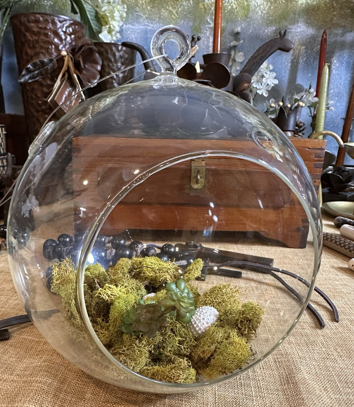 Are your plants tired of living in boring terra cotta pots? Say hello to the round glass air plant container—the ultimate Airbnb for your foliage! With its sleek design, this little clear capsule is like a luxury penthouse for air plants, offering a 360-degree view of your most stylish living space. It’s so chic, even your friends will think it’s a trendy science experiment! Just pop in your air plant, and watch as it floats effortlessly (and without water, thank you very much) while also dramatically improving your room’s Instagram aesthetic. Warning: possessors of this glass wonder may experience uncontrollable feelings of botanical superiority and spontaneous “plant parent” selfies! Grab it now, before your plants start demanding a subscription to Plant Vogue ! The Air Plant Hanging Glass Terrarium is a medium-sized, round container with a clear glass material and a flat bottom, suitable for both indoor and outdoor use. It includes one hanging air plant glass designed for air plants, airplants, and succulents. The terrarium features a large front hole for easy plant placement, two side holes for aeration, and a hanging device for display. Measuring 8 inches in height, and 7 inches in width, this handcrafted terrarium is a stylish and practical way to showcase your greenery. Good condition. You may see other items in the background of this Barboglio piece. If you are new here, these background items will be within my Ebay shop either this week or next week. So, you get a sneak peak of what is coming up next! :)!! Here is my Ebay shop: YouBeYou LLC If you have any questions even after you have purchased the item --- I am here for you to answer any questions that you may have! I strive to work diligently with every buyer to ensure they are a satisfied buyer, so please contact me anytime. This is a pre-owned item and I take great care to accurately describe the item but please see the pictures for full details. While we do our best to list every item in detail, these are vintage and pre-owned items, and some flaws are to be expected. Please see all photos/ video as they are a large part of the description of our items. Items come from a smoke-free environment. Each item is described in accurate detail with multiple measurements and various photos at different angles front and back, side to side, top and bottom. I have additional similar items that I have yet to list that you may be interested in. Feel free to follow my store ( YouBeYou LLC ) to see those when posted. Please see all photos/ video as they are a large part of the description of our items. I strive to make every purchase a pleasant experience. Please feel confidence in you purchase that I'll make every effort to correct any issues that may arise. If used, there are always some signs of wear -- well, because it is used, vintage, or antique. Most items are used -- Each item is inspected for quality. It is very important to us that you have a happy Ebay experience! Thank you for supporting a small business like ours! (Note: pictures may include measurements, and some have a video.)
