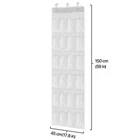 Hanging Shoe Organizer, Over the Door Closet Shoes Storage Hanger, Footwear Holder, 24 Clear Plastic Pockets w/ 3 Steel Hooks for Cloth Cleaning Supplies House Stationery Accessories, White Hanging Shoe Organizer, Over the Door Closet Shoes Storage Hanger, Footwear Holder, 24 Clear Plastic Pockets w/ 3 Steel Hooks for Cloth Cleaning Supplies House Stationery Accessories, White Introduction: You've bought tons of cleaning supplies to keep your home spotless, but now you find yourself with another problem. How do you keep all those oddly-shaped bottles organized? You might be tempted to stash them all under the kitchen sink, but that can be dangerous if you have little ones or pets running around. You need everything accessible, but high enough to guarantee that it's out of reach. The good news is you only need one easy-to-find item to fix your storage issue: an over-the-door organizer. 1. Hang the over-the-door shoe organizer near your laundry or bathroom. 2. Fill the empty pockets with sponges, sprays, wipes, and any other cleaning supplies you use regularly. Make sure you select an organizer with clear plastic pouches so that you can see the products easily. This will keep you from fumbling through each pocket to find exactly what you need. You can also use the same trick to organize your bathroom toiletries, shoes, or to store hair tools like brushes, curling irons, and blow dryers. Our 24-pocket over-the-door organizer has quite a lot of space to suit your needs; it's also strong and durable to hold up your stuff in an organizing fashion. Feature: 24 See-through Pockets - Made out of waterproof plastic material for its durability & visibility of the contents and can hold a dozen pairs of shoes. The non-woven dustproof back fabric is naturally breathable, non-toxic, and eco-friendly. Versatile Hanging Storage Organizer - Not just for shoe/slipper storage, you can use it for various household goods depends on your needs. It is an excellent storage solution for your foods, clothing/underwear, cosmetics, cleaning supplies, jewelry accessories, stationaries, books/magazines, and many more. Easy Accessibility - The clear transparent pockets help you quickly see through the things placed in each pocket. There's no need to make a guess; you can locate and take the stuff you need within a few seconds! Space-Saving Design - Perfect in the entryway or walk-in closet, this organizer corrals your shoes or home accessories in an effortless style. It frees up the floor space by vertically organizing all the stuff. Easy to Set Up - Comes with 3 sturdy steel hooks that fit any standard interior door (thickness within 11.18in). Hang the organizer over the door, and it's ready to use, perfect for your bedroom, bathroom living room, and basement. Specification: Dimensions (L x W): 150 x 45 cm/ 59 x 17.8 inches Pocket Sizes (L x W x H): 20 x 12 x 4 cm/ 7.9 x 4.7 x 1.6 inches Weight: 0.26kg/ 0.57lb Package Content: 1 x Hanging Shoe Organizer, Over the Door Closet Shoes Storage Hanger, Footwear Holder, 24 Clear Plastic Pockets w/ 3 Steel Hooks for Cloth Cleaning Supplies House Stationery Accessories, White
