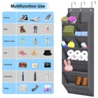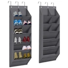 Hanging Shoe Organizer for Closet with 9 Deep Pockets, Over the Door Shoe Rack,Shoe Holder for Narrow Door Dorm RV Shoe Storage, Grey Capacity and Storage Space: Shoe storage is 46 x 16 x 6 inches, including 6 large pockets and 3 extra large pockets.This shoe rack can easily various types of shoes, such as baby shoes, slippers, sneakers, high heels, a great helper for your storage Wearable Material: Shoe organizer is made of high quality 600D Oxford fabric , which has a thick yarn and a special weaving method, making it highly wear-resistant. Even after multiple washes and rubs, it is not easily worn or deformed Durable and Good load-bearing: The shoe holder is more durable than ordinary fabrics, and good breath ability. It can withstand 40 pounds and is supported by tubes in each row, preventing deformation. It's no problem to storage men's sneakers or big boots Meet Your Various Needs: Our shoe holder not only effectively stores shoes, but also can be widely used for storing toys, cleaning products, beauty products, animal products, toiletries, kitchen supplies and other household daily necessities Fit Most Door: The shoe rack has three sturdy metal hooks, and the metal hooks fit door between 1.36 to 1.57 inches thick. Please be sure to carefully measure door top thickness before purchasing