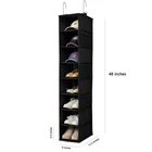 Hanging shoe organizer has 8 separate shelves. Each shelf measures 11.5*9*5.5 inches (L*W*H) and the shoe organizer is in total 48'' in height. Space saving shoe and hat Holder & Storage, closet organizer great for shoes, baseball caps, purses, handbags Etc. Perfect for organizing bedrooms, closets, laundry room, play room, college dorm rooms. There are two hooks in the package. You can choose to use the hooks or hang them directly. The hat organizer is made of strong and breathable fabric, which strengthens seams to increase strength and support.