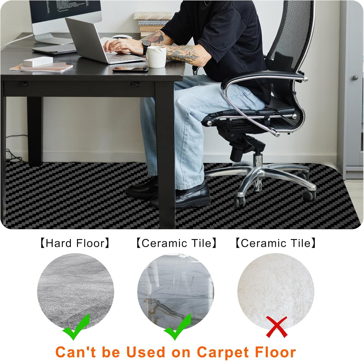 This chair mat is a game-changer for hardwood floors! The smooth glide makes moving effortless, and it stays firmly in place without curling. The large size provides plenty of coverage, and the sleek black design blends perfectly with any office setup. Easy to clean and durable—highly recommend for home or office use!