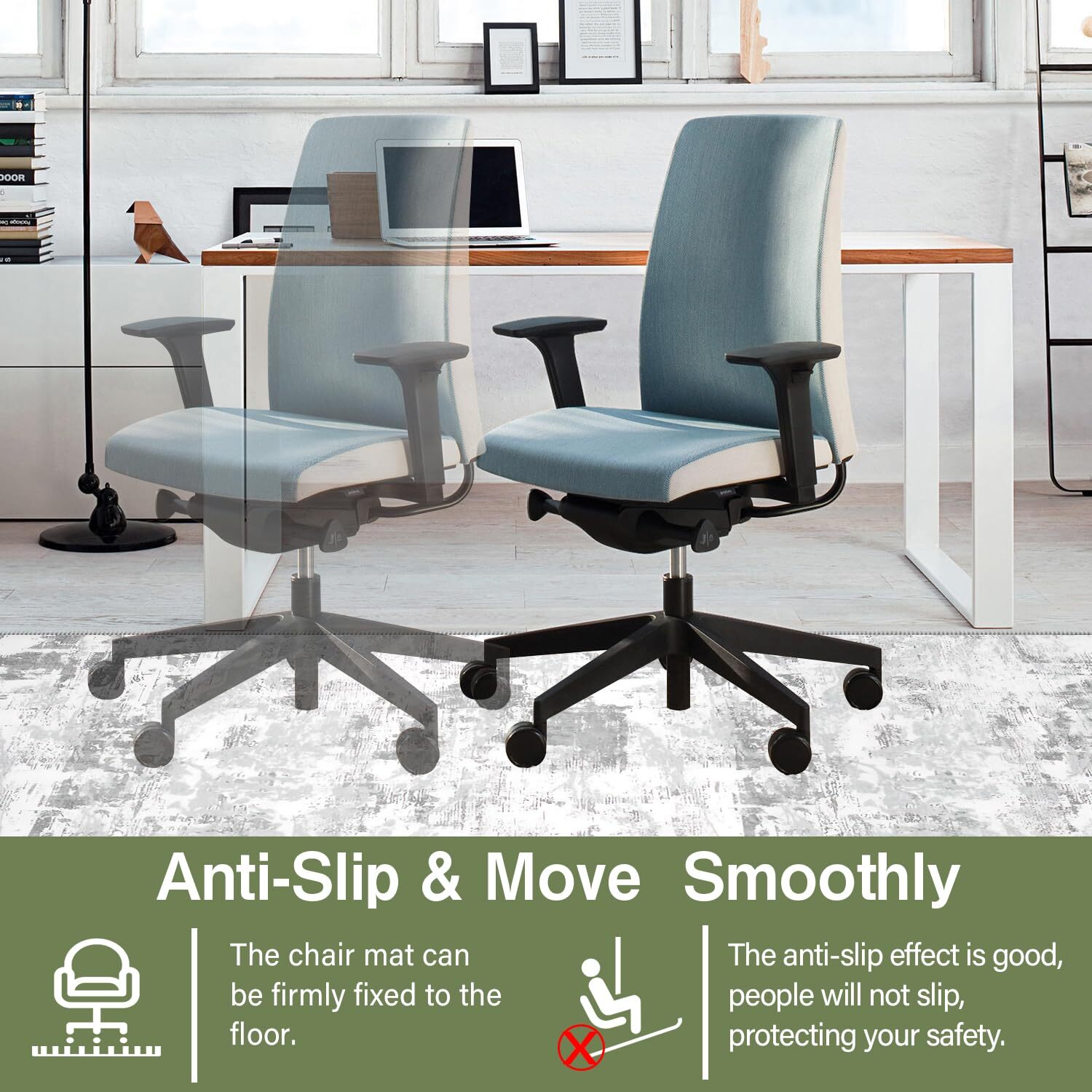 This chair mat is a game-changer for hardwood floors! The non-slip base keeps it securely in place while the low-pile fabric allows smooth rolling. Love the abstract design—adds style while protecting floors from scratches. Easy to clean and the perfect size for my workspace. Highly recommend for anyone wanting both function and flair!