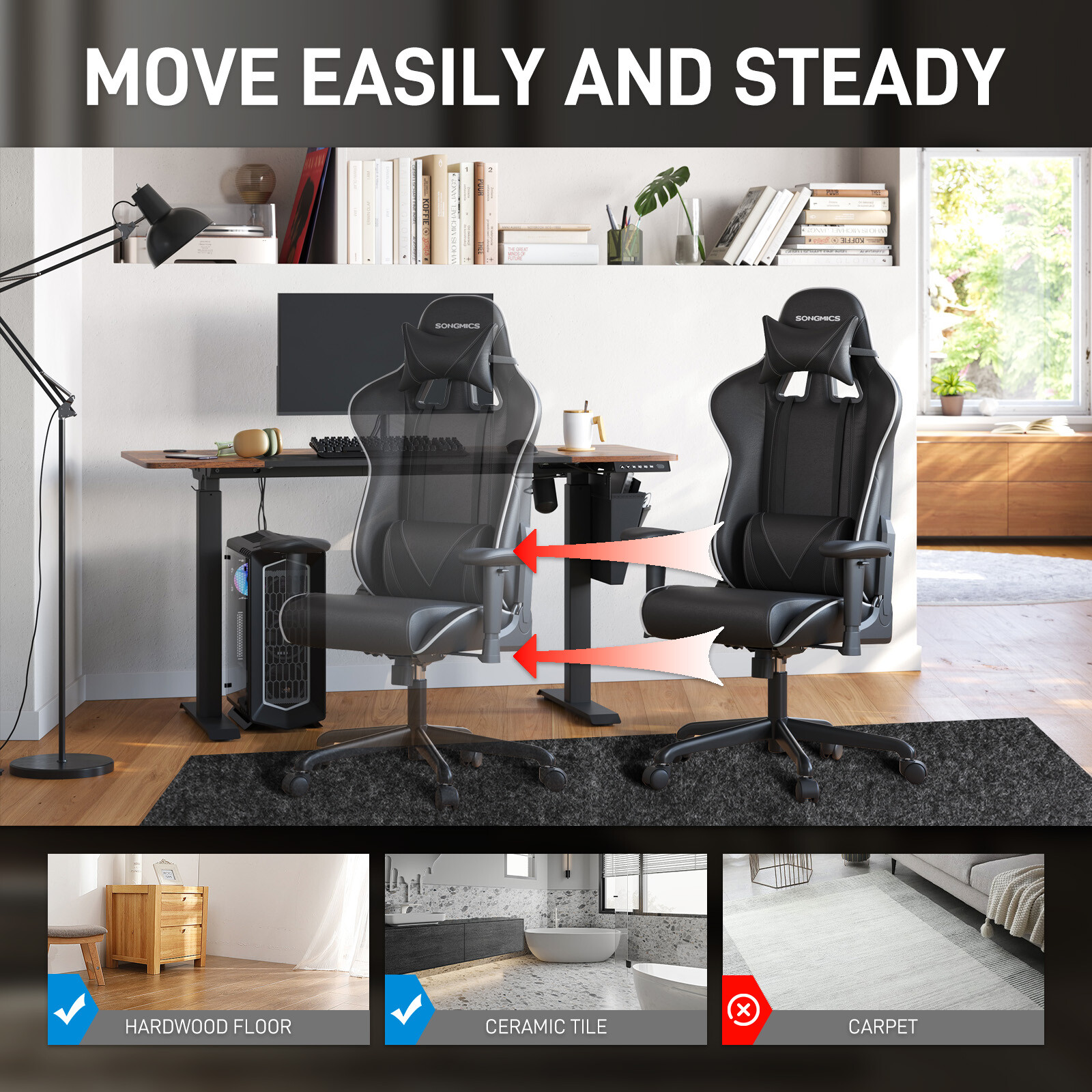 This office chair mat is a game-changer for hardwood and tile floors! The 2.5mm thick polyester material stays perfectly flat without curling or cracking, and it's completely odorless and non-toxic. I love how it protects my floors from scratches while keeping my chair stable with its strong non-slip surface. It rolls out smoothly and stores easily when not in use. Plus, being machine washable makes cleanup a breeze. Perfect for home offices and safe around kids too!