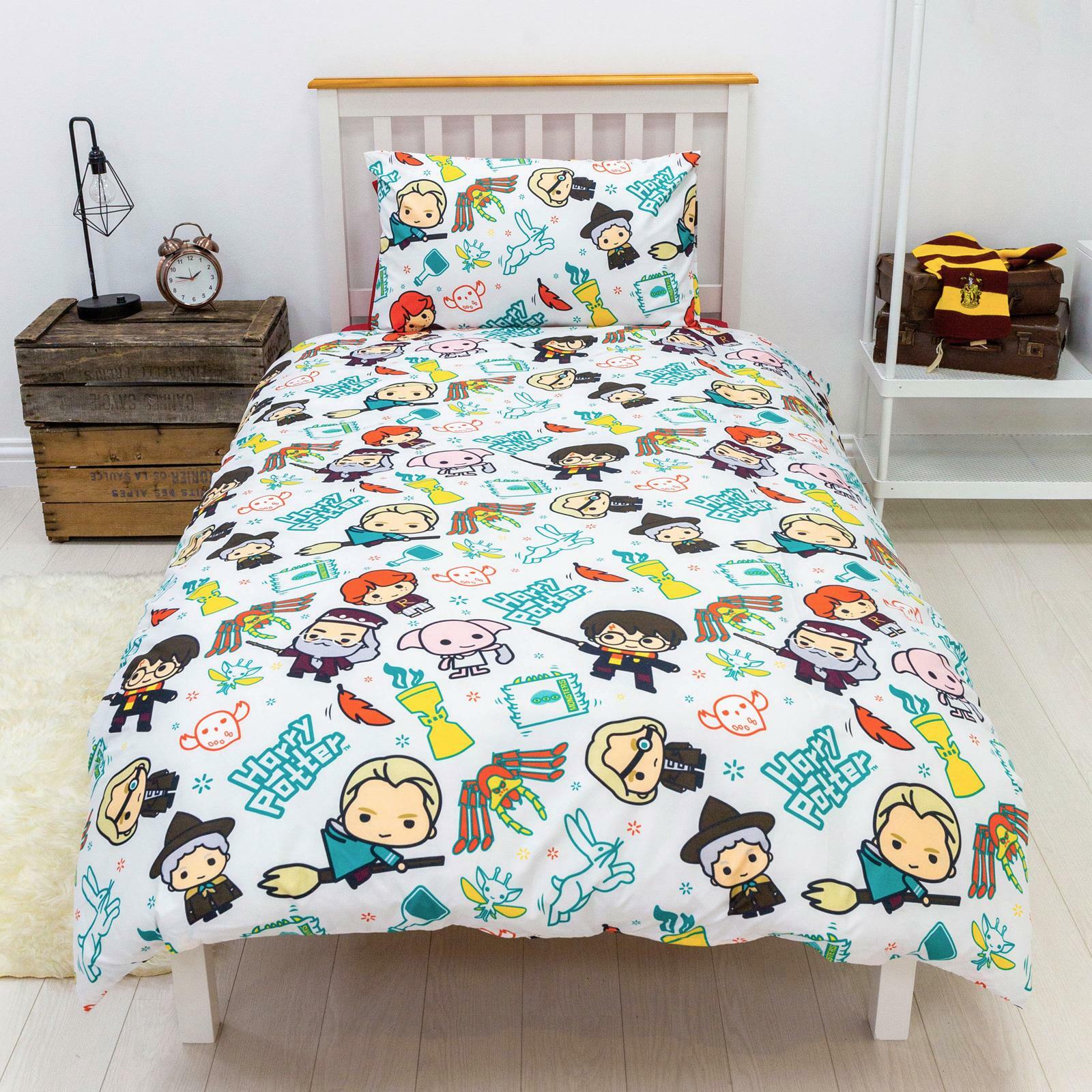 Wallpaper Character Kids Bedroom Adult Bedroom Football Outdoor Toys & Bikes We are one of the biggest wallpaper and character bedding brands on eBay with over 20 years selling experience, millions of happy customers and 300,000 feedback. Visit our store Harry Potter twin duvet cover bed sheets Set Kawaii Scene Children's Reversible Bedding Product description 100% official merchandise Reversible 2 in 1 design Features your favourite Harry Potter characters Duvet cover size: 135cm x 200cm (53in x 78.5in) Pillowcase size: 48cm x 74cm (19in x 29in) Includes 1 twin duvet cover bed sheets and 1 pillowcase 100% polyester microfibre Machine washable Main colour: Multi This Harry Potter Scene twin duvet cover bed sheets set is a must for any fans of the popular books and films. The fun design features fantastic cartoon style versions of your favourite characters such as Harry himself, Ron, Luna Lovegood, Dobby, Professor Moody and Dumbledore with colourful spiders, spells and clouds on a white background, with a similar smaller repeat pattern on the reverse. This single bedding set is suitable for machine washing and can be tumble dried on a cool setting. Shop Categories wallpaper Adult Wallpaper Brick Effect Wallpaper Children's Wallpaper Sparkle Wallpaper character Baby Shark Barbie Batman Bing Bunny Bluey Cocomelon Despicable Me Minions Disney Cars Disney Frozen Disney Princess Fireman Sam Fortnite Friends Harry Potter Hello Kitty Hey Duggee LEGO L.O.L. Surprise Marvel Mickey & MInnie Mouse Minecraft My LIttle Pony Nintendo Super Mario PAW PATROL Peppa Pig Playstation Pokemon Pusheen Scooby Doo Sonic the Hedgehog Spiderman Spongebob Squarepants Star Wars Stranger Things Thomas & Friends Toy Story Transformers Trolls WWE Wrestling kids bedroom Bedding Beds & Mattresses Curtains Cushions Exclusive Designs Fleece Blankets Floor Rugs Furniture Generic Kids Duvets Lighting Ready Beds Towels Toys Wall Stickers adult bedroom Bedspreads Duvets & Pillows Single Duvets Double Duvets King Duvets Super King Duvets Satin Bedding Sets Towels Cushions Curtains Football Arsenal FC Barcelona FC Celtic FC Chelsea FC Liverpool FC Manchester City FC Manchester United FC Real Madrid FC Tottenham Hotspur FC West Ham Untied FC outdoor toys & bikes Bagpacks, Lunch Bags and more Bikes & Trikes Helmets & Safety Inflatables & Pools Lunch Bags Outdoor Fun Outdoor Toys Play Tents Ride-ons Role-Play Fun Scooters Skateboards We are one of the biggest wallpaper and character bedding brands on eBay with over 20 years selling experience, millions of happy customers and 300,000 feedback. Harry Potter twin duvet cover bed sheets Set Kawaii Scene Children's Reversible Bedding Includes 1 twin duvet cover bed sheets and 1 pillowcase This Harry Potter Scene twin duvet cover bed sheets set is a must for any fans of the popular books and films. The fun design features fantastic cartoon style versions of your favourite characters such as Harry himself, Ron, Luna Lovegood, Dobby, Professor Moody and Dumbledore with colourful spiders, spells and clouds on a white background, with a similar smaller repeat pattern on the reverse. This single bedding set is suitable for machine washing and can be tumble dried o