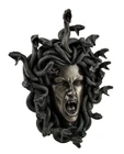 It's said that looking into the eyes of medusa instantly turns her victims to stone. The snake-haired gorgon serpent seemingly comes to life in a cold cast bronze sculpture, so you can proudly hang her head on your wall. Cold-cast bronze is a method of mixing bronze powder into a resin mixture to give it the look of solid metal with a striking bronze finish. The only color on this medusa sculpture is on the venomous snakes in green with red tongues, and the texture looks so real, it'll make you do a double take. And you thought you had morning hair! Medusa may be menacing, but you can tame her by hanging her head on the wall as a trophy! Our eBay Store About Us Add to Favorite Sellers Head of Medusa the Greek Gorgon Serpent Bronze Finish Statue 14.5 in. High, 11.5 in. Long, 4.5 in. Wide Expertly Sculpted in Cold Cast Bronze in Intricate Detail with an Amazing Realistic Texture Mixing Bronze Powder with Resin Creates a Solid Metal Appearance with a Striking Finish Hand Painted with Green as the Only Color Seemingly Brings the Snakes to Life, and It's Said that Looking Into the Eyes of Medusa Instantly Turns the Victim to Stone A Must-Have Piece for Any Fantasy or Mythology Art Collection It's said that looking into the eyes of medusa instantly turns her victims to stone. The snake-haired gorgon serpent seemingly comes to life in a cold cast bronze sculpture, so you can proudly hang her head on your wall. Cold-cast bronze is a method of mixing bronze powder into a resin mixture to give it the look of solid metal with a striking bronze finish. The only color on this medusa sculpture is on the venomous snakes in green with red tongues, and the texture looks so real, it'll make you do a double take. And you thought you had morning hair! Medusa may be menacing, but you can tame her by hanging her head on the wall as a trophy! Product Details Color Bronze Height 14.5 Length 11.5 Weight 4.85 LB