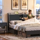 Storage with Flip Door: In addition to the long top shelf, the headboard features a hidden cubby with a knob lock. The flip-down door opens and closes effortlessly, making it ideal for storing personal items. Plus, the door can be opened to temporarily hold drinks and snacks Double Socket Design: Each side of the headboard is equipped with a power strip with 2 AC outlets and 2 USB ports, allowing for convenient access and charging for your phone, tablet, desk lamps and other devices, regardless of your position on the bed Ergonomic Backrest: The backrest of the headboard is designed with a 95-degree tilt angle, providing optimal support and helping to relieve the fatigue during a long day. Its polished and curved edges ensure your safety at all times High-Quality Headboard: This headboard is crafted with premium particleboard and a robust metal frame, offering stability and longevity. An anti-tip device further enhances its overall stability, promoting a peaceful night's sleep Easy Assembly: Detailed instructions and all necessary tools are included to save you time and effort during assembly. The bed frame adapters and accessories allow the headboard to be easily adapted to different widths of bed frames Product Description Specifications: - Color: Black - Material: Engineered Wood, Metal - Product Size: 59"L x 5"W x 40.9"H - Product Weight: 29.9 lb - Max. Static Load Capacity: 44 lb With Flip Door Closed for private storage and opened to place drinks temporarily. Dual-Outlet Design Providing sufficient sockets for charging multiple devices. Ergonomic Backrest Offers a comfortable support and prevents items from falling into the gap. Easy Installation The bed frame adapter brings a flexible installation experience. More Other Choices for You Add to Cart Add to Cart Add to Cart Add to Cart Add to Cart Add to Cart Customer Reviews — — 5.0 out of 5 stars 1 5.0 out of 5 stars 2 4.6 out of 5 stars 5 5.0 out of 5 stars 1 Price $89.99 $ 89 . 99 $79.99 $ 79 . 99 $89.99 $ 89 . 99 $91.99 $ 91 . 99 $89.99 $ 89 . 99 $108.29 $ 108 . 29 Color Black Black and Grey Black+Brown White+Black Black Black+Brown Size 61"L x 5.5"W x 43"H-Queen 4.5 x 59 x 36.6 inches 60.2"L x 5.9"W x 44"H-Queen 60.24"L x 4.72"W x 37.6"H 59"L x 5"W x 40.9"H-Queen 76"L x 5.9"W x 44"H-King Material Particleboard, Metal Engineered Wood, Metal, Sponge Metal, Upholstered Particleboard, Metal Particleboard, Metal Metal, Upholstered Charging Station 2 AC + 2 USB Port + 1 Type C 2 AC + 2 USB Port + 2 Type-C 2 AC + 2 USB Port + 2 Type C 2 AC + 4 USB Port 4 AC + 4 USB Port 2 AC + 2 USB Port + 2 Type C with LED Light ✔ ✘ ✔ ✔ ✘ ✔ Package Contents: - 1 x Headboard - 1 x Accessory Kit - 2 x Charging Station - 1 x Anti-Tip Kit - 1 x Instructions